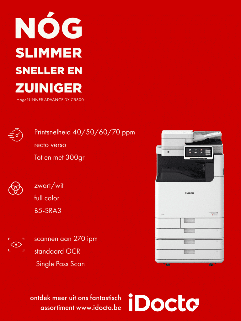 La toute dernière imprimante multifonction Canon imageRUNNER ADVANCE DX C5800 est à la fois un choix écologique, synonyme de pas moins de 15% d’économie d’énergie, et un gage de sécurité à 360° pour vos documents, votre réseau et vos appareils.